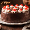Massa dóbos, recheio de creme colorido à base de creme de leite e cobertura de chocolate meio amargo e cerejas. *Torta serve até 10 fatias.