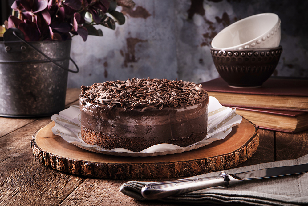 Massa fofinha de chocolate, com uma generosa camada de mousse de chocolate meio amargo, intensa na medida certa. Por cima, uma camada cremosa de mousse de chocolate ao leite, que derrete na boca e equilibra perfeitamente o sabor. Tudo finalizado com raspas delicadas de chocolate ao leite.